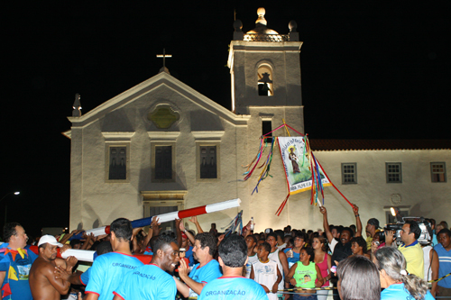 Festas de São Benedito e São Sebastião - Nova AlmeidaNos dias 18, 19 e 20 de janeiro, moradores e turistas de Nova Almeida, município de Serra (ES), invadem as ruas do balneário para cantar e dançar ao som dos tambores e casacas, no ritmo do congo Serrano. É a tradicional Festa de São Benedito e São Sebastião, que está entre as mais populares do Espírito Santo e reúne, num misto de fé, devoção e alegria, diversas bandas de congo da Serra, além de atrair milhares de turistas e admiradores da cultura popular capixaba. Além da celebração de missas na histórica Igreja e Residência dos Reis Magos, os festejos têm seu ponto alto no dia 20 de janeiro, quando inúmeras bandas de congo saem em procissão pelas ruas de Nova Almeida ao lado de uma réplica do navio “Palermo”, que é carregado por devotos dos santos católicos. Às margens do rio Reis Magos, a multidão de fiéis e turistas aguarda a chegada da procissão marítima, que traz consigo um dos principais símbolos dos festejos, um mastro de madeira todo pintado. Ele é então colocado pelos fiéis no “navio” sob muitos aplausos e cantos. Depois disso, a multidão, formada por crianças, jovens e adultos, segue atrás das bandas de congo e do navio “Palermo” em nova procissão pelas principais avenidas do balneário até chegarem à praça da Igreja dos Reis Magos, onde acontece o momento mais bonito e emocionante da festa de São Benedito e São Sebastião. É a tão esperada hora da fincada do mastro. Após o ritual, uma linda queima de fogos nos arredores da Igreja dos Reis Magos enfeita os céus de Nova Almeida.